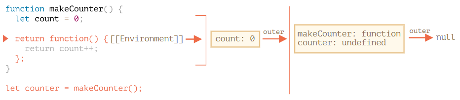 ◾️ counter.[[Environment]]엔 {count:0}이 있는 렉시컬 환경에 대한 참조가 저장된다.