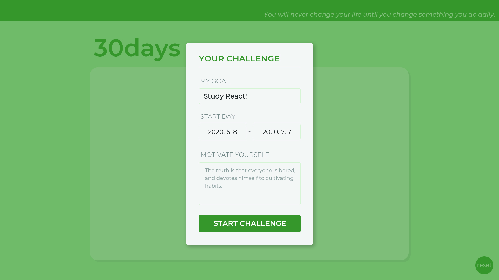 3. 날짜는 reset하는걸로... ** - 도전 기간과 도전 종료일 D-day를 알려준다. **